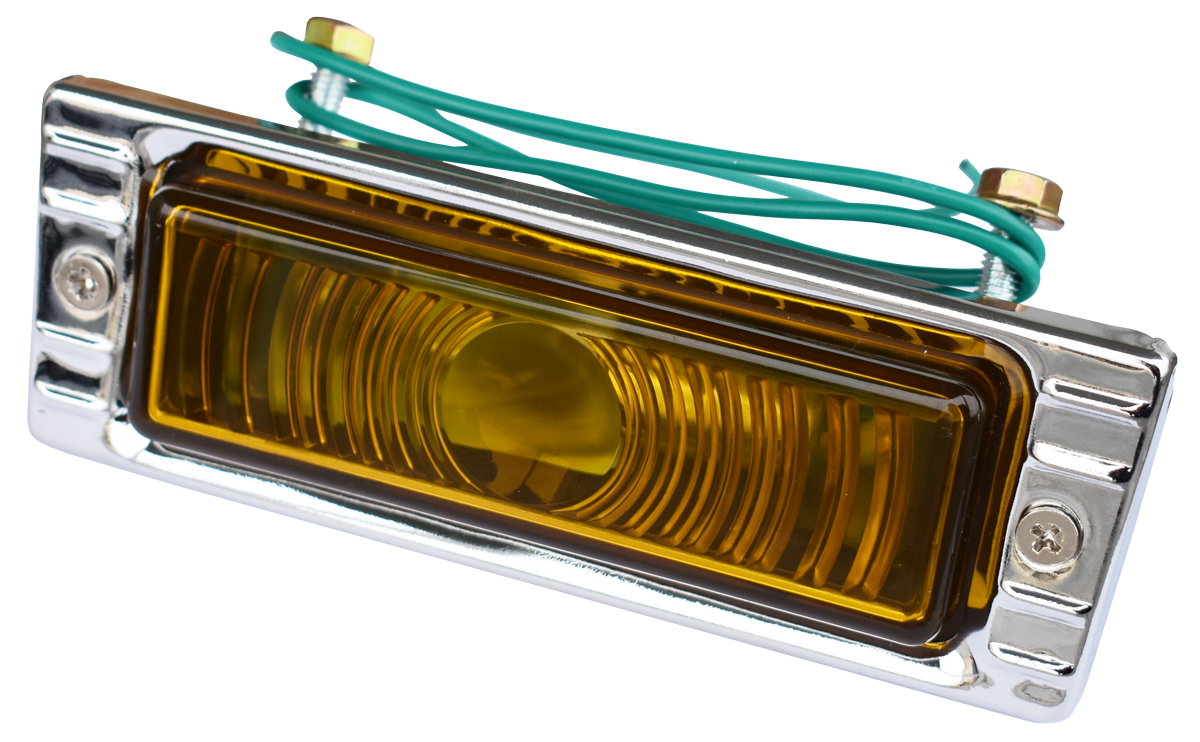 0846-520 This yellow lens. 12V, park lamp assembly (clear shown) fits:1947-1953 Chevrolet Pickup TruckMeasurement 6 1/4" x 2 1/8" x 2"