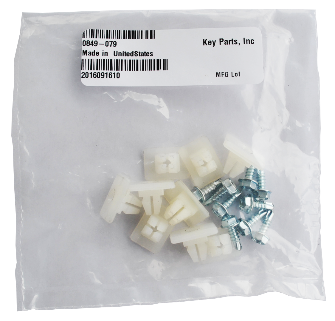 Kit contains 9 clips and 9 screws for attaching the inner grille to the outer grille frame