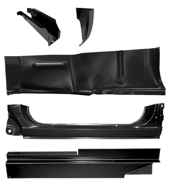 0850-001 L Rocker panel 5 piece repair kit, driver's side. Kit includes: cab floor front support, outer cab corner, full rocker panel, rocker panel backing plate and outer floor pan repair piece. It fits: