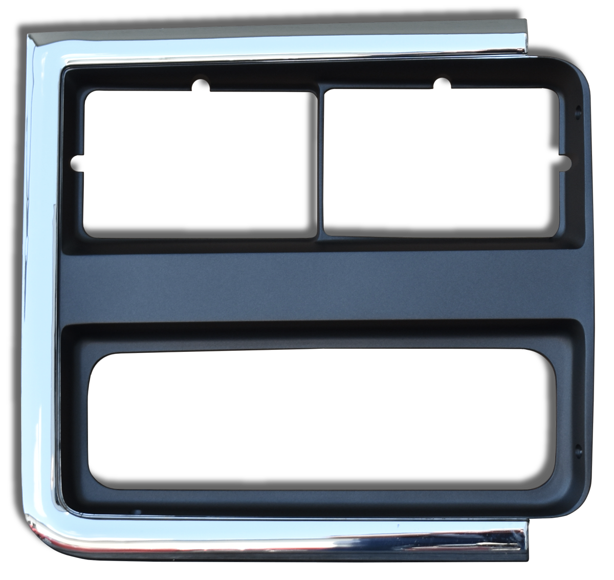 0851-060 This passengers side, chrome and dark argent, headlight bezel, for dual headlights, fits: